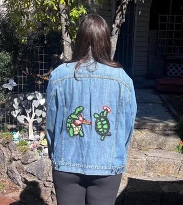 Upcycled denim Jackets (hand embroidered, Tie-Dye). Upcycled Flannel Shirts with decals.Other hippie stuff (all Hand Made.)